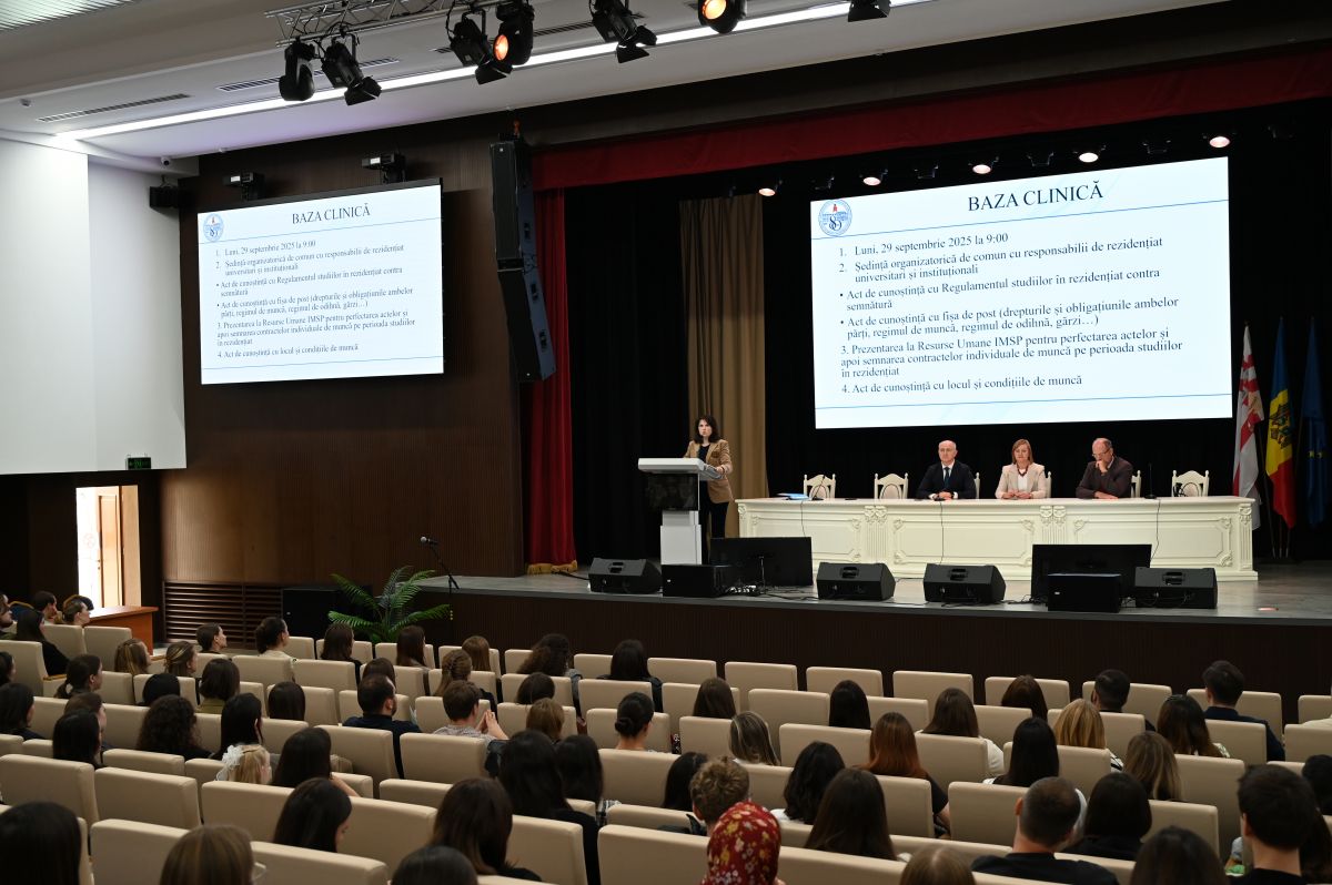 În cadrul ședinței din 29 septembrie, rezidenților le-a fost prezentat Ordinul cu privire la repartizarea la bazele clinice de rezidențiat a medicilor/farmaciștilor rezidenți înmatriculați la anul I de studii 2025-2026, conform specialității pe loc și post.
