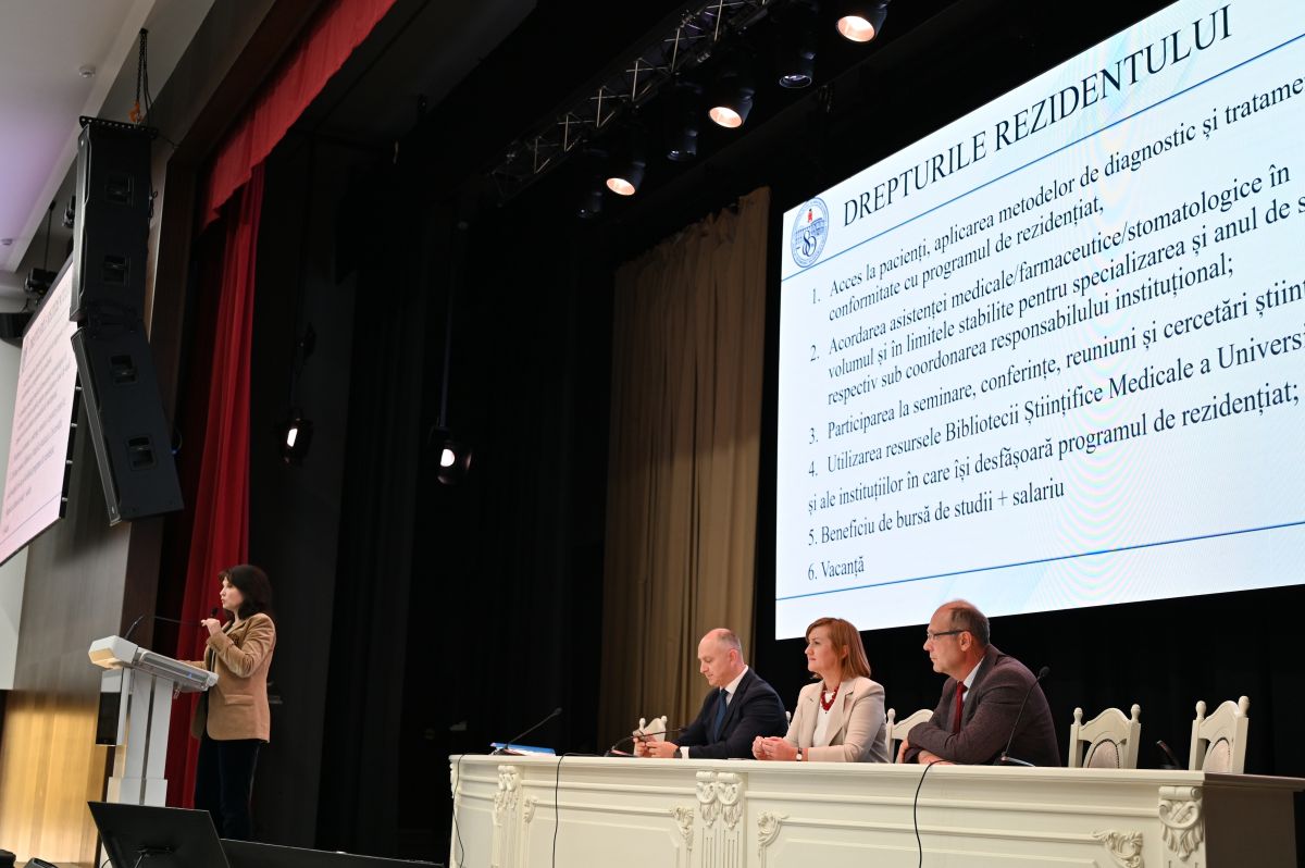 Prorectorul pentru managementul activității clinice, conferențiarul universitar Marcel Abraș, i-a asigurat pe medicii rezidenți că sunt așteptați în spitale, dorindu-le să se identifice în cadrul echipelor de gardă, să realizeze volumul de asistență medicală prevăzut în conformitate cu curricula fiecărei specialități, pentru că doar așa vor putea deveni specialiști foarte buni. „Astăzi începeți studiile în rezidențiat într-o Moldovă aproape europeană și, sper, să le finalizați când Moldova va fi integrată în Uniunea Europeană, unde veți avea dreptul de liberă practică oriunde, iar pentru asta trebuie să aveți cunoștințe teoretice și abilități practice foarte bune. Noi, cei care suntem parte a bazelor clinice, vă vom transmite tot ceea ce cunoaștem mai bine și vă rog să vă integrați activ”.